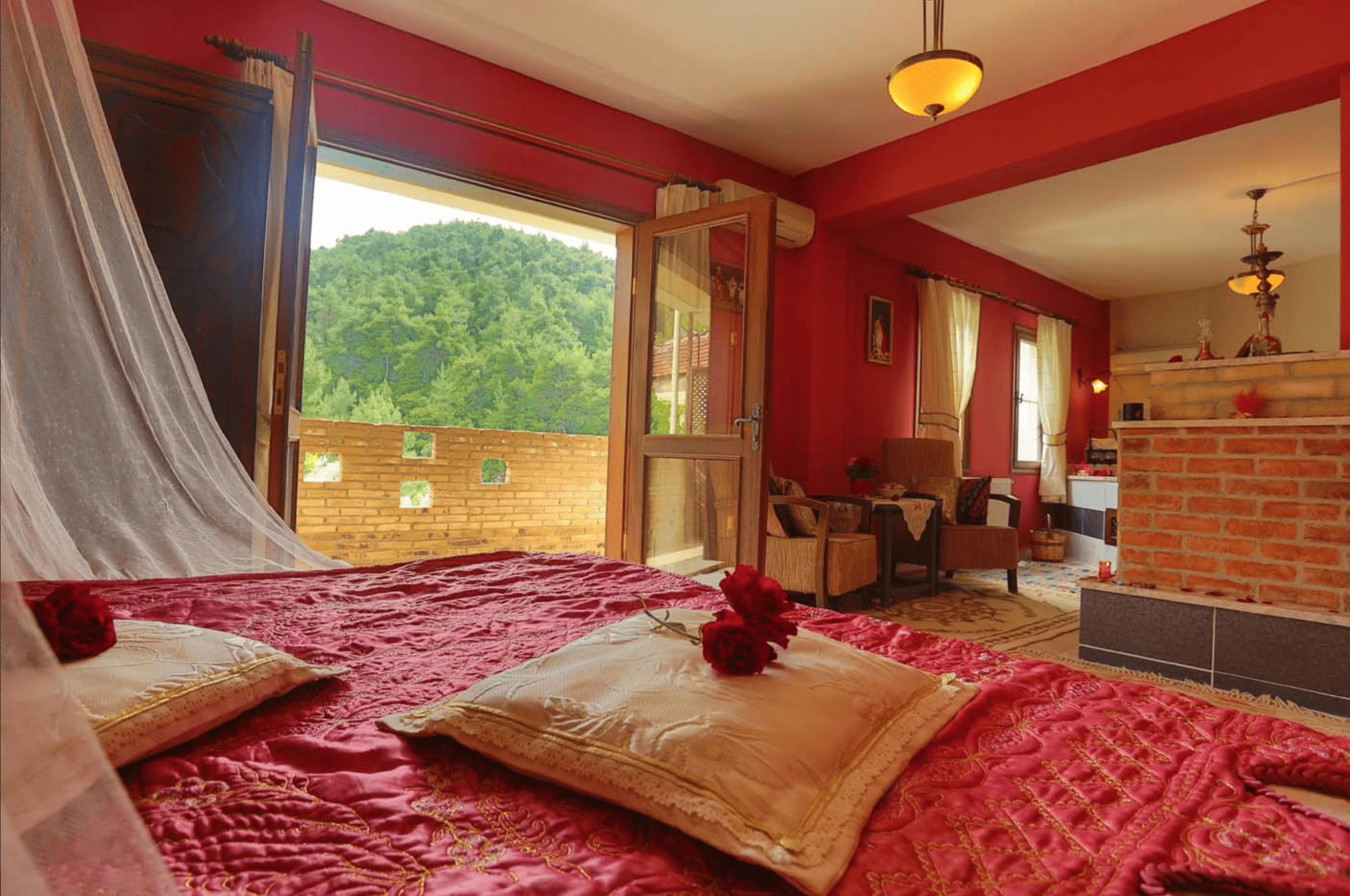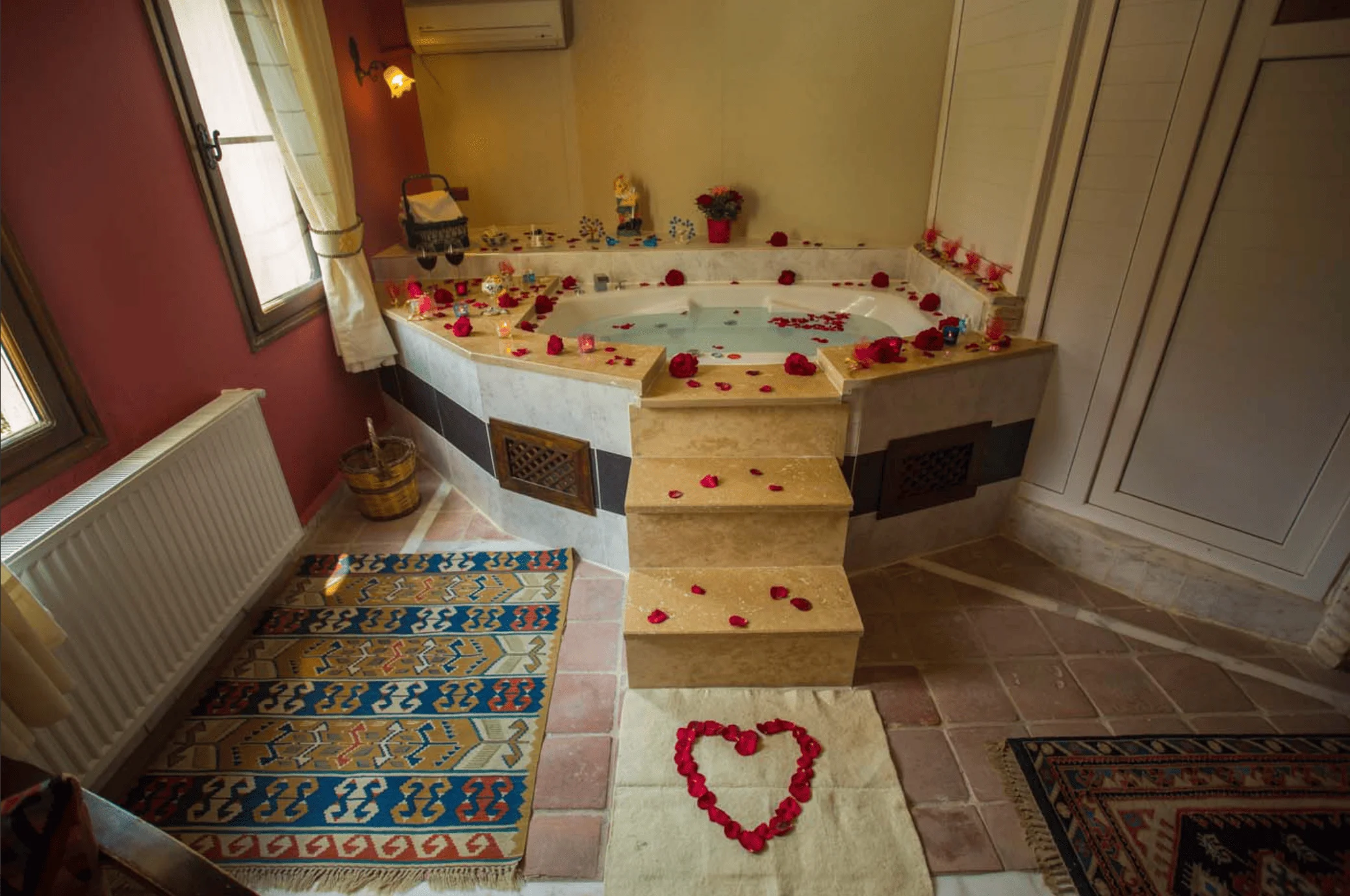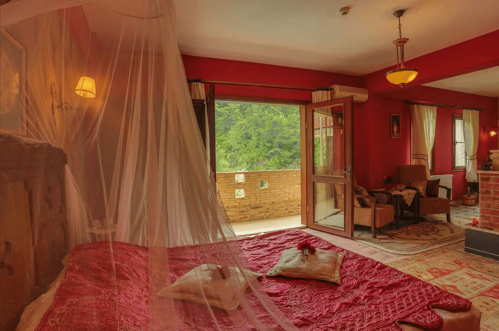 Süit Oda ekstra geniş (40 m²) olup, kral boy yatak, çift kişilik küvetli geniş mermer banyo, jakuzi, özel balkon, şömine, oturma alanı ve çalışma masası/çalışma alanı ile donatılmıştır. Bu odalar geleneksel tarzda benzersiz bir şekilde dekore edilmiştir. Her iki odanın tavanları da geleneksel ahşap tasarımla dekore edilmiştir.