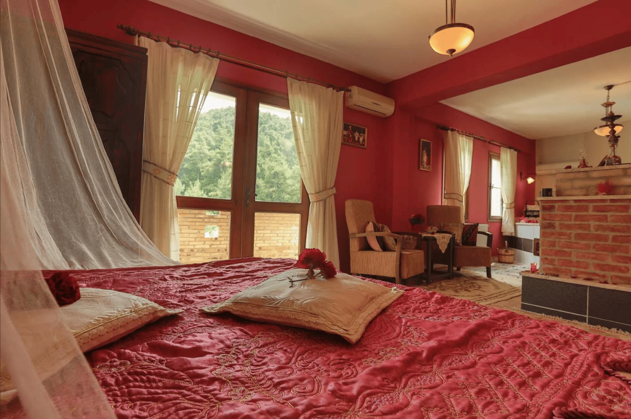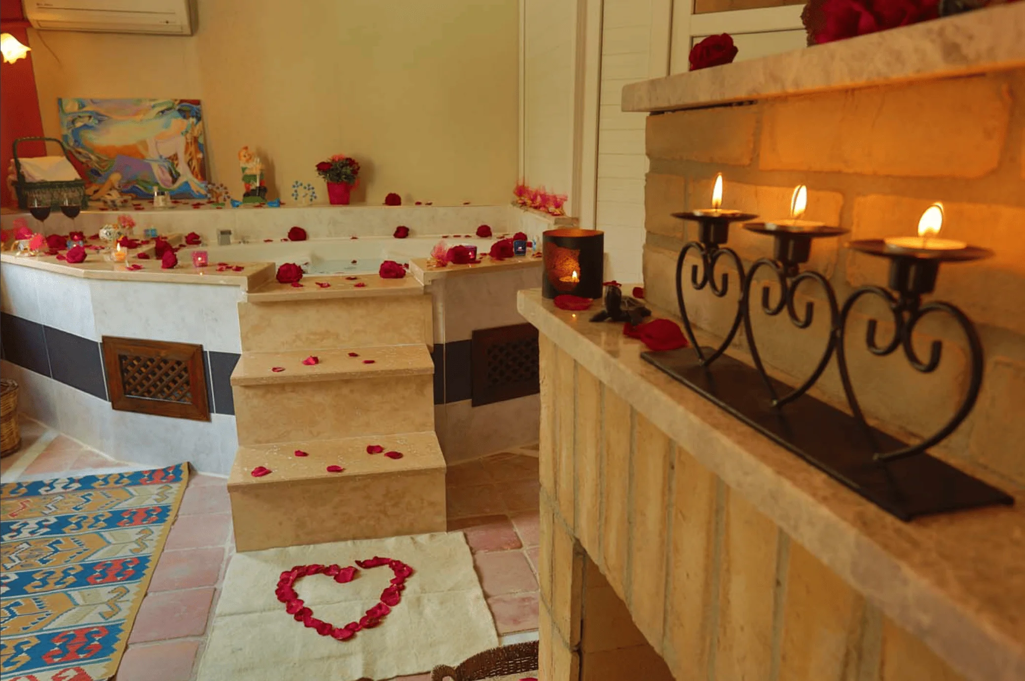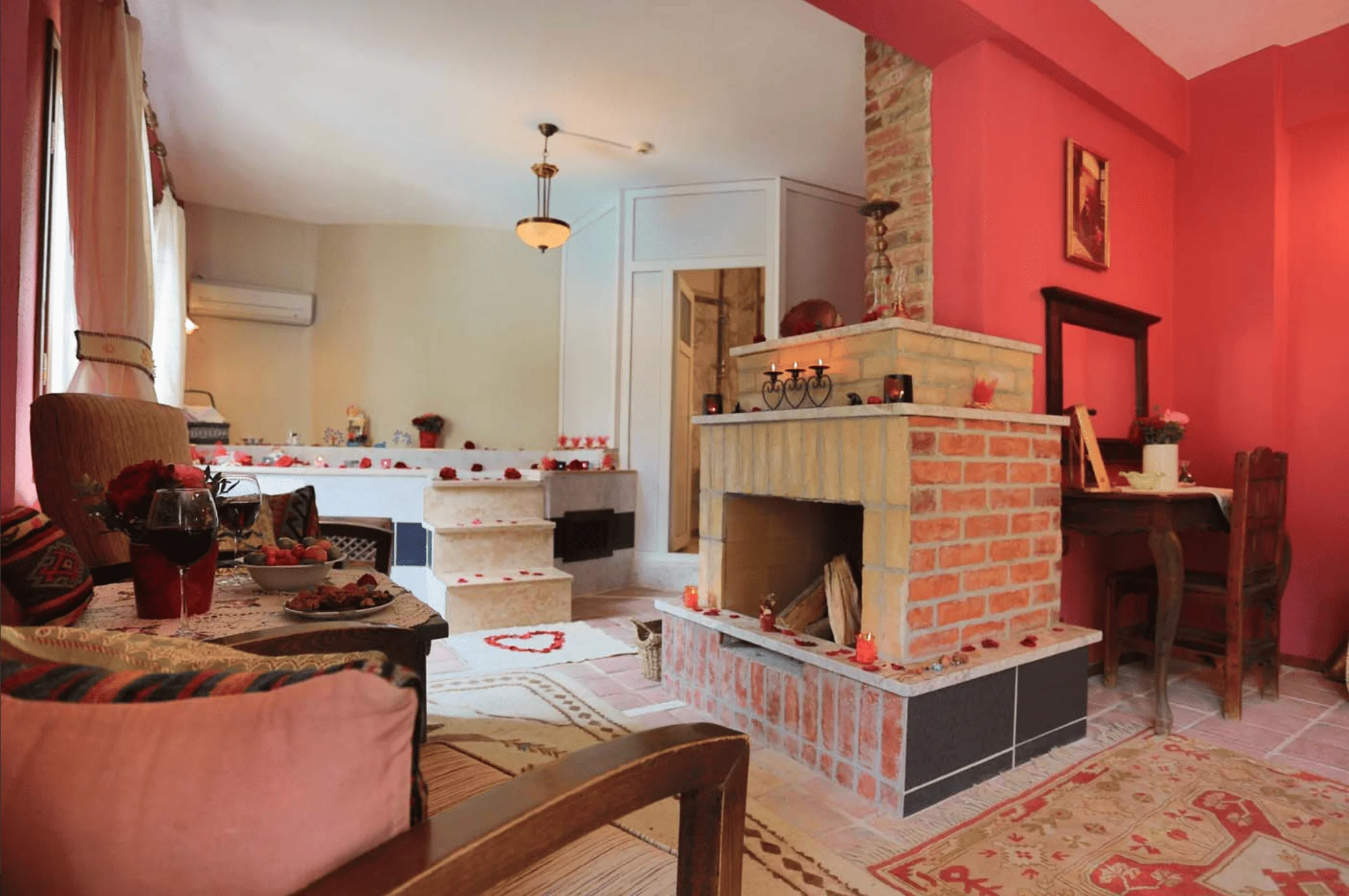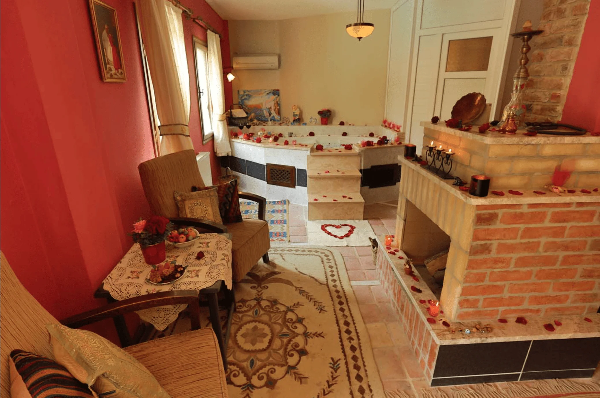 Süit Oda ekstra geniş (40 m²) olup, kral boy yatak, çift kişilik küvetli geniş mermer banyo, jakuzi, özel balkon, şömine, oturma alanı ve çalışma masası/çalışma alanı ile donatılmıştır. Bu odalar geleneksel tarzda benzersiz bir şekilde dekore edilmiştir. Her iki odanın tavanları da geleneksel ahşap tasarımla dekore edilmiştir.